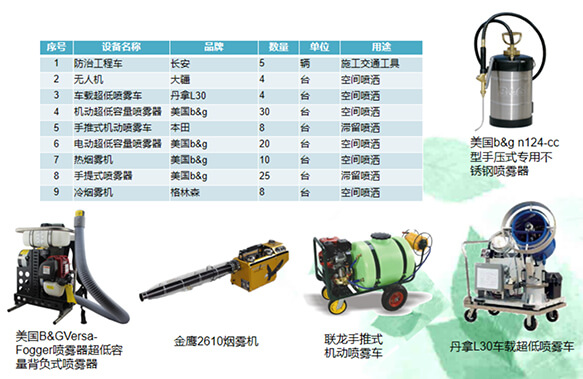 具有行業(yè)先進(jìn)的設(shè)備,美國B&GVersa-Fogger噴霧器超低容量背負(fù)式噴霧器30臺(tái)、電動(dòng)超低容量噴霧器20臺(tái)、熱煙霧機(jī)10臺(tái)、手提式噴霧器25臺(tái)......